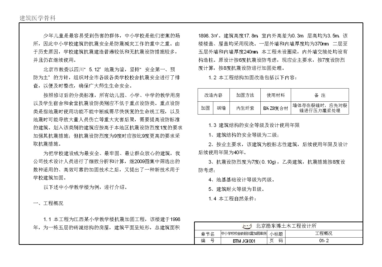 中小学校校舍嵌筋抗震加固案例